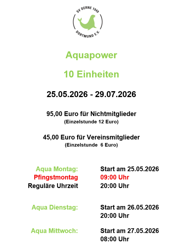 Neustart der Aquapower-Kurse vom 25.05.2026-29.07.2026