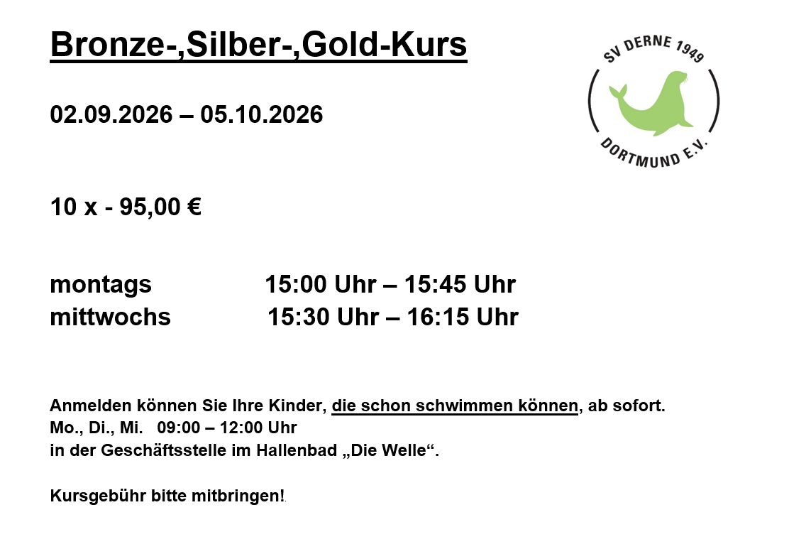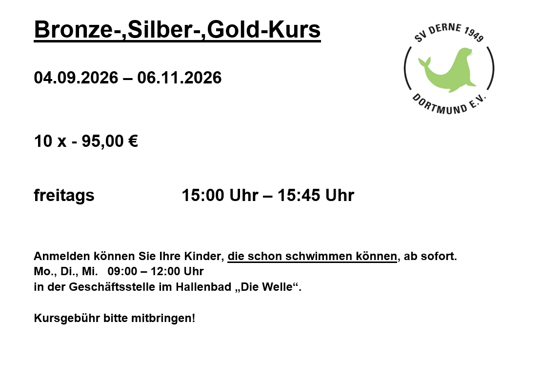 Bronze-, Silber-, Gold-Kurs 02.09.2026 – 05.10.2026