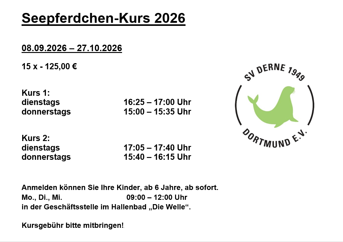 Seepferdchen-Kurs 08.09.2026 – 27.10.2026