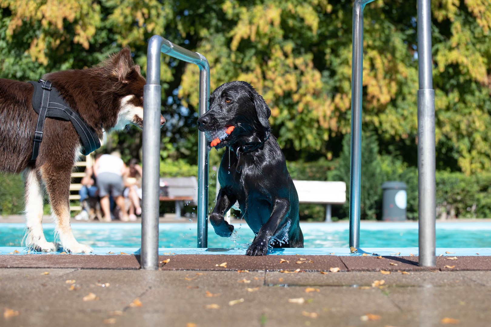 Während unsere treuen Frühschwimmer am Sonntag, 07.09.2025 zwischen 08:00 – 10:00 Uhr noch einmal ihre Bahnen zogen, ging es ab 10:00 Uhr im Freibad Derne richtig rund: Die Vierbeiner übernahmen das Kommando. Zum traditionellen Hundeschwimmen strömten bei strahlendem Spätsommerwetter über 300 Besucher und rund 180 Hunde ins Freibad. Die ersten Pfoten platschten pünktlich ins Wasser – und je weiter der Tag voranschritt, desto voller und fröhlicher wurde das Becken. Bei sommerlichen 27 Grad lockte das klare, eisblaue Wasser nicht nur alle Fellnasen ins Becken. Vom kleinsten Gast mit 13 cm Schulterhöhe bis zum größten mit stolzen 75 cm war alles dabei. Es gab die energiegeladenen Sprinter, die eleganten Schwimmer, die gemütlichen „Chiller“ – und natürlich die selbsternannten vierbeinigen „Bademeister“, die vom Beckenrand mit Gebell das Treiben überwachten. Die Stimmung war ausgelassen und entspannt. Kein einziges Vorkommnis trübte den Tag – stattdessen wurde gespielt, geplanscht und geschnüffelt, was das Zeug hält. So verabschiedete sich das Freibad Derne in allerbester Gesellschaft aus der Saison. Und eines steht fest: Schon jetzt fiebern wir dem nächsten Hundeschwimmen entgegen. Wir sagen Danke an alle die dabei waren. Viel Freude mit den Fotos eurer Hunde.
